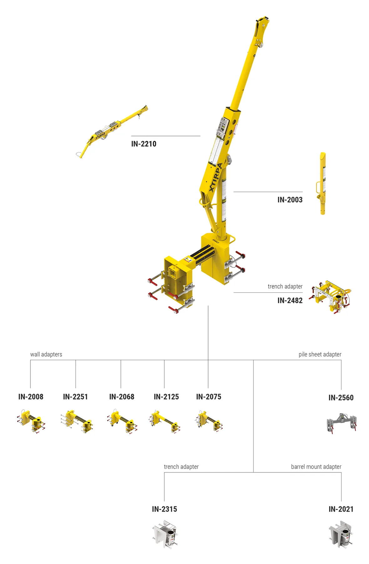 Het IN-8010 systeem is ontworpen om plaats te bieden aan verschillende soorten Xtirpa™ davit armen, afhankelijk van de werksituatie. Als de werksituatie nu een korte arm, een verstelbare of vaste davit arm vereist, de adapter biedt een solide en stabiele basis voor efficiënt gebruik.