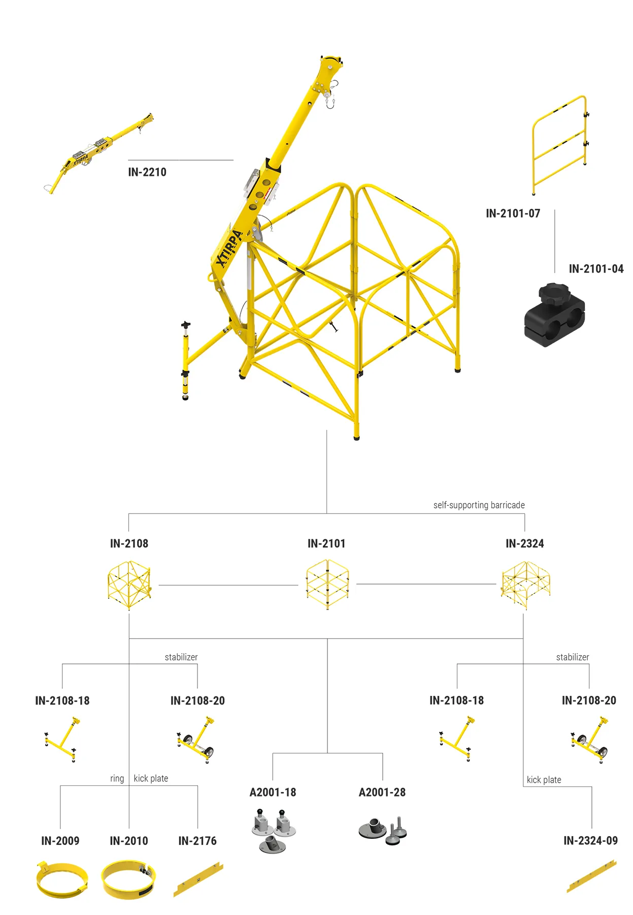 De IN-8011 is een groot mobiel hekwerk waarop een davit arm met een bereik van 610mm bevestigd kan worden. Dit betredingssysteem is speciaal ontworpen voor het beveiligen van betreders boven verticale openingen (mangaten, luiken, enz.). Het hekwerk biedt een collectieve bescherming voor de veiligheidswacht of andere passanten.