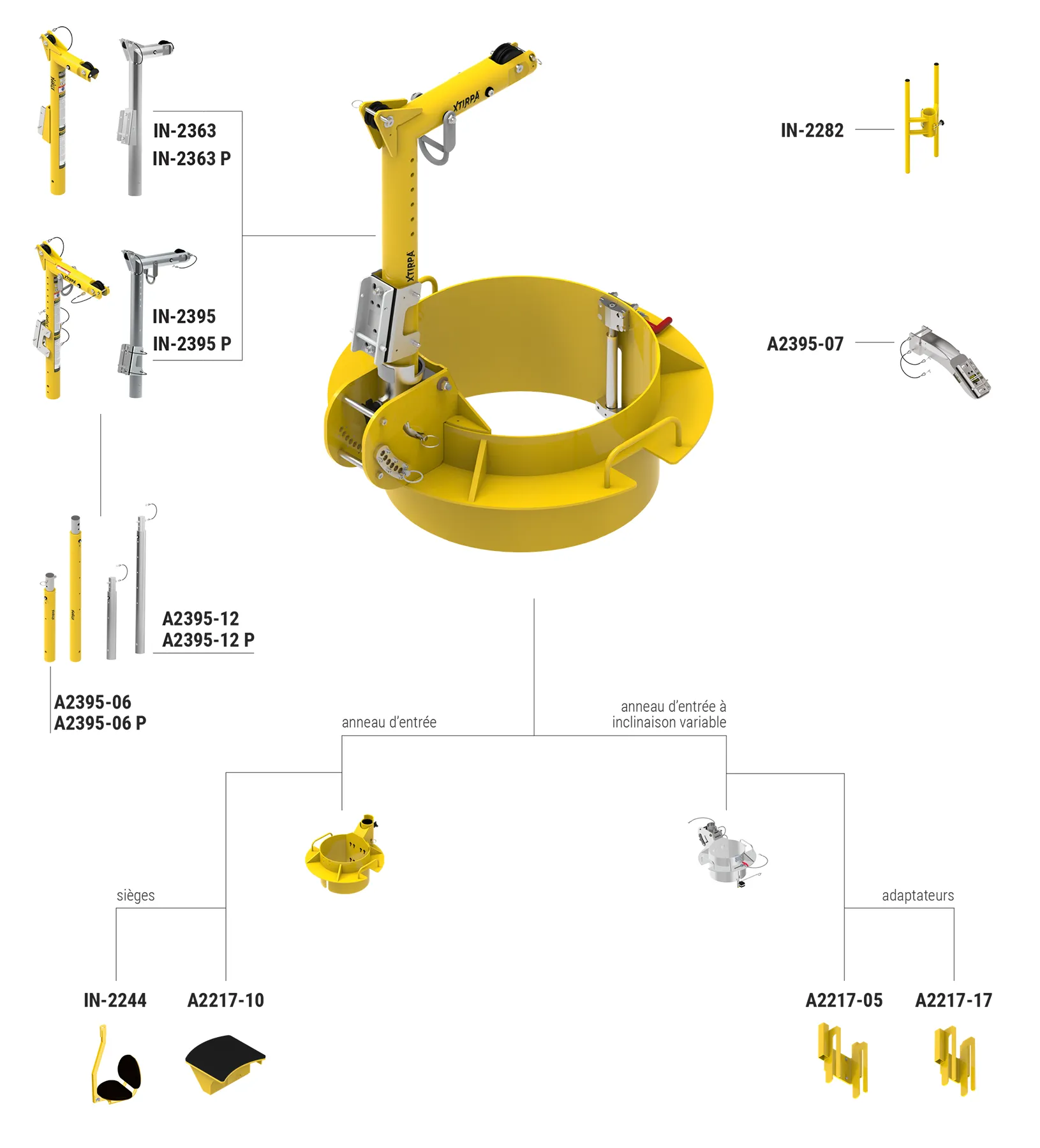 De davit arm IN-2395 is compatibel met verschillende lieren waaronder de Xtirpa™ winch (IN-2477) die met behulp van een bevestigingsbeugel op de davitarm bevestigd kan worden. Er bestaan verschillende bevestigingsbeugels voor verschillende merken van valblokken met reddingsfunctie.