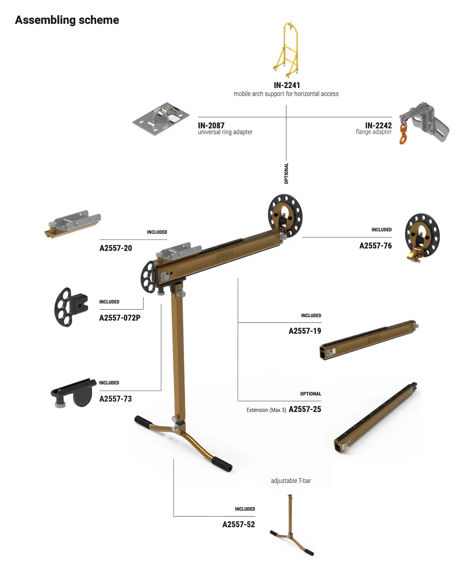 De X-TRAK-R is ontworpen met het kenmerkende Xtirpa™ modulaire concept waardoor je een hoogte van 122,8″ (3120 mm) kunt bereiken met maximaal 3 optionele A2557-25 verlengstukken. Alle verlengstukken zijn voorzien van borgpennen waardoor montage snel, eenvoudig en veilig is.