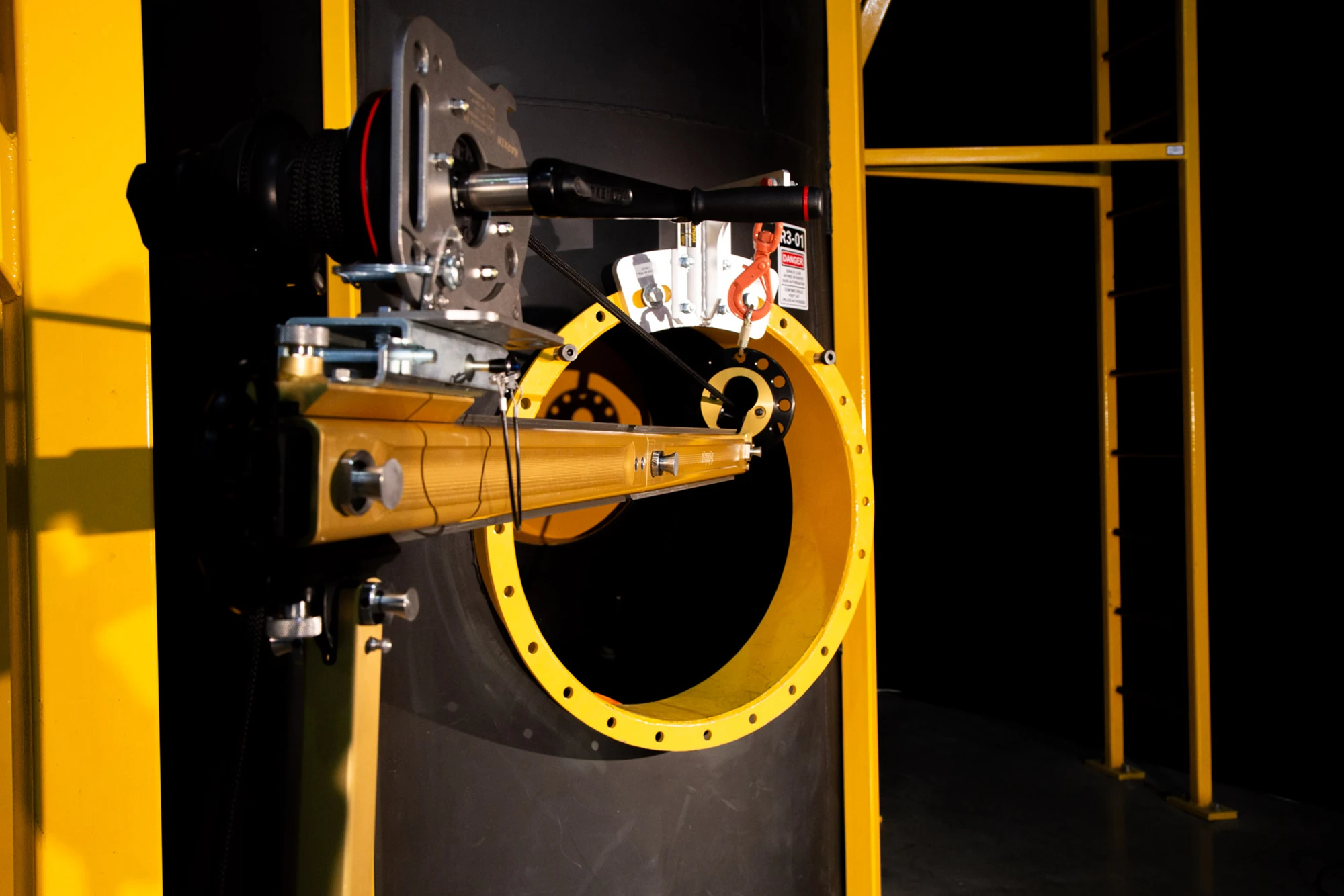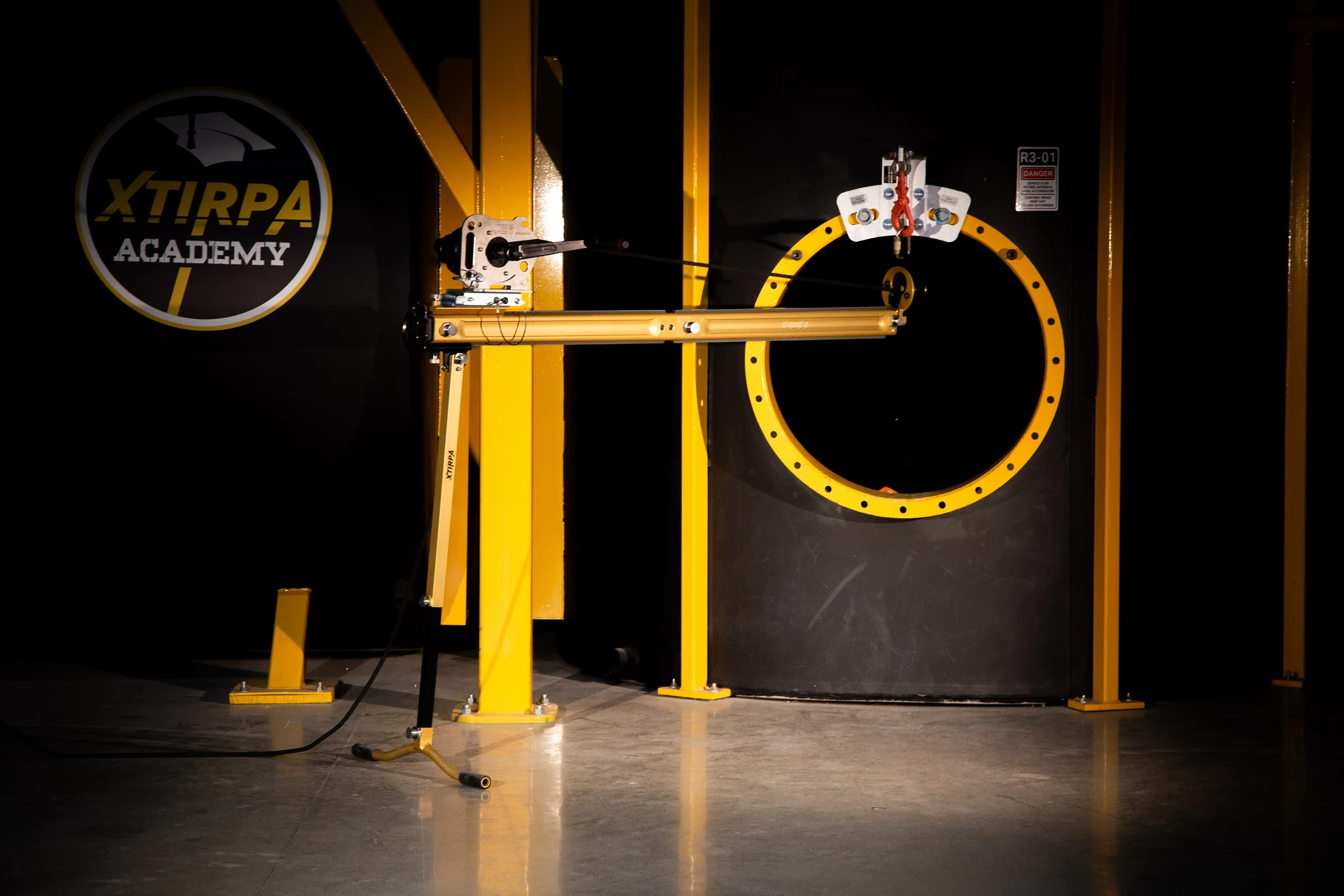 Om de veiligheid van het team te garanderen, is de X-TRAK-R uitgerust met meerdere bevestigingspunten. Zowel rond het draaibare hoofd als aan de achterkant van het systeem. Ze zijn ontworpen om het systeem vast te zetten wanneer het wordt gebruikt in specifieke werkconfiguraties, bijvoorbeeld +/- 90° ten opzichte van het ingangspunt.